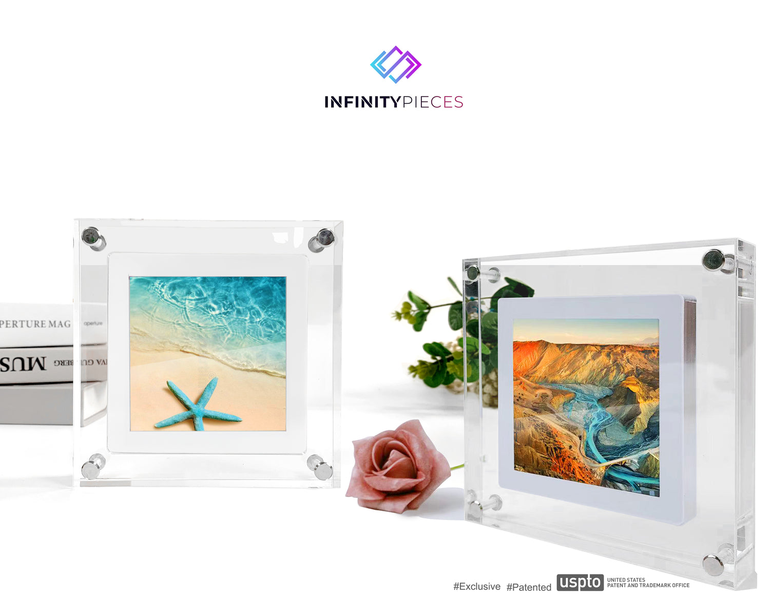 INFINITY PIECES Square Frame Digital Art Photo Video Display (Square 1:1 Ratio, HD 1080p)