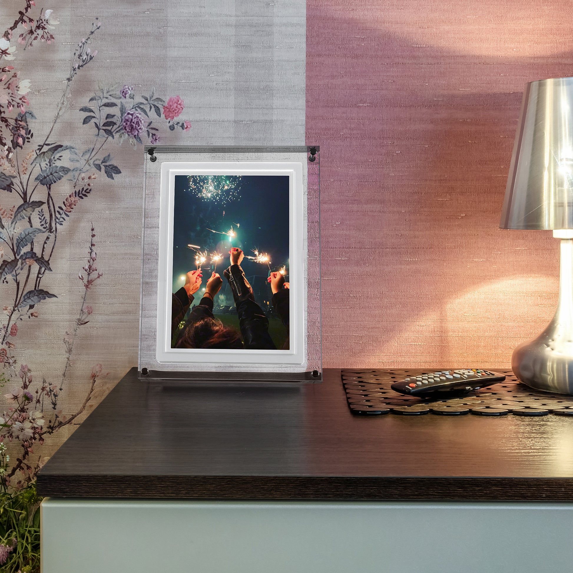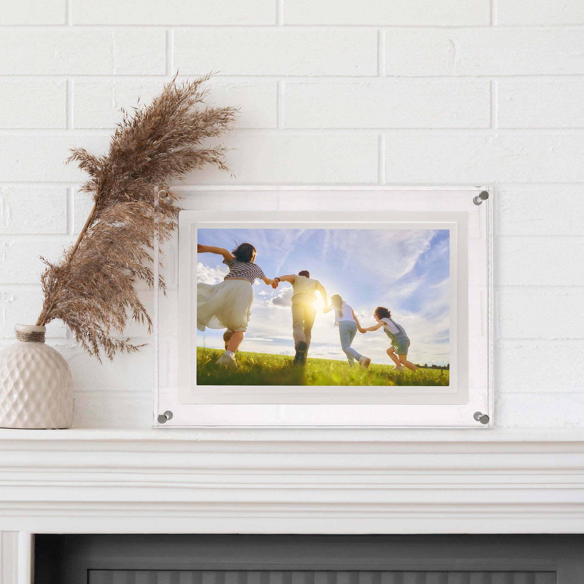 Touchscreen is very responsive and easy to use. The auto-rotation feature is really handy and works flawlessly. Touchscreen is very responsive and easy to use. The sleek acrylic frame adds a touch of elegance to any room.